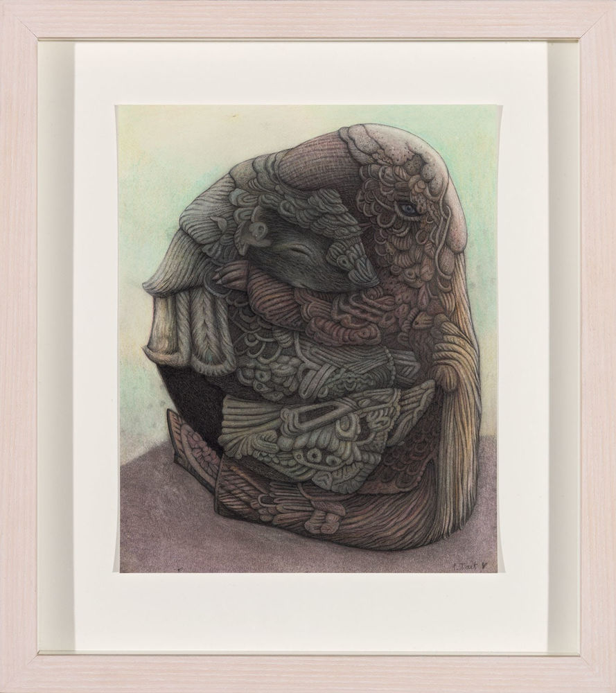 inks, oil pastel, pencil and pen on paper